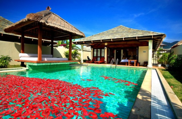 情侶別墅大床房,面積71平方米,獨(dú)立院宅,大床(2*2米),有浴缸 免費(fèi)寬帶,此房型特點(diǎn):1房1廳1衛(wèi)1露天浴,設(shè)有廚房,和獨(dú)立庭院及泳池,高大植物及圍墻,私密性極高。