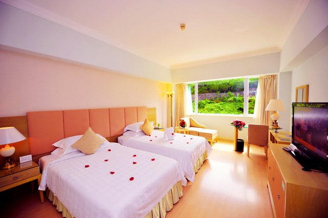 豪華海景雙床房 面積:39-45平方米 樓層:2-8層 海景:180度海景 陽臺:觀海陽臺 雙標(biāo):1.3*2米 浴缸:大部分房間有 寬帶:免費